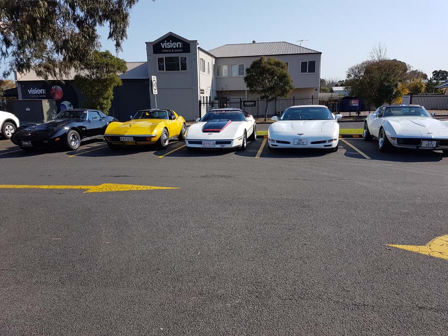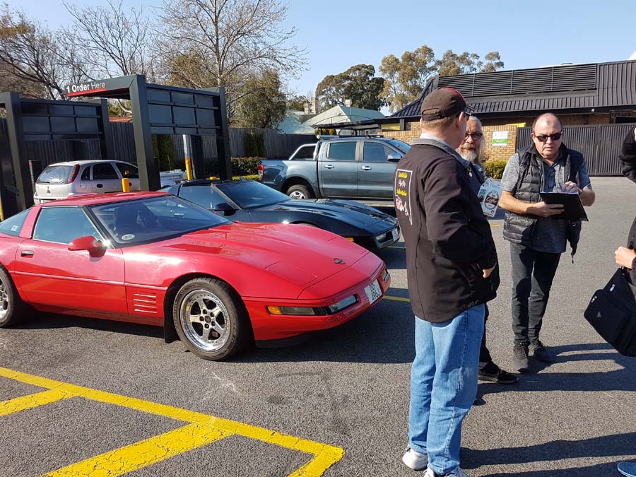 Met at Macca's, Goodwood Road, Kings Park at 9:00 am on the 9th of the 9th. It was a lovely cool clear morning with a forecast in the low 20s. Had a few apologies before we got started, ending up with nine Corvettes ready for the run, plus a visit from Alan Orchard (in his black C3), with a friend from Canberra.